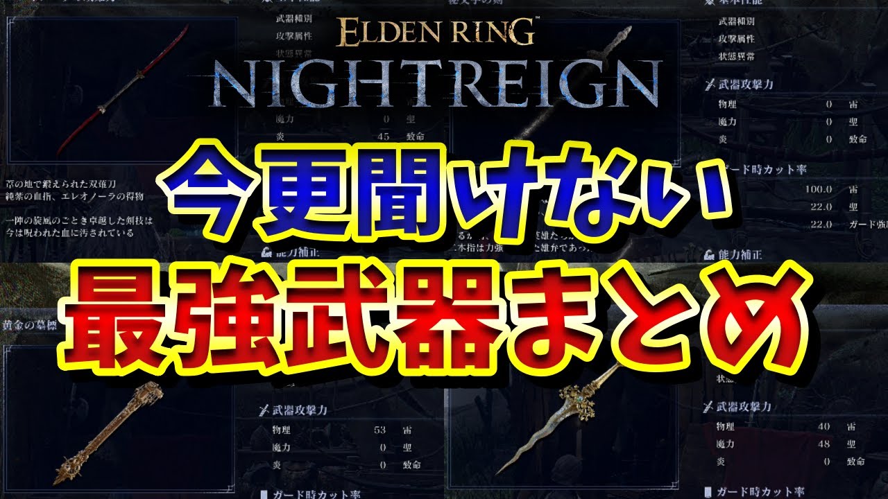 YouTubeで詳細を確認=>【ELDEN RING NIGHTREIGN】深度3勢に送る、紫レアまでの隠れ強~人気最強武器!一気に解説まとめ【両刃剣まで】