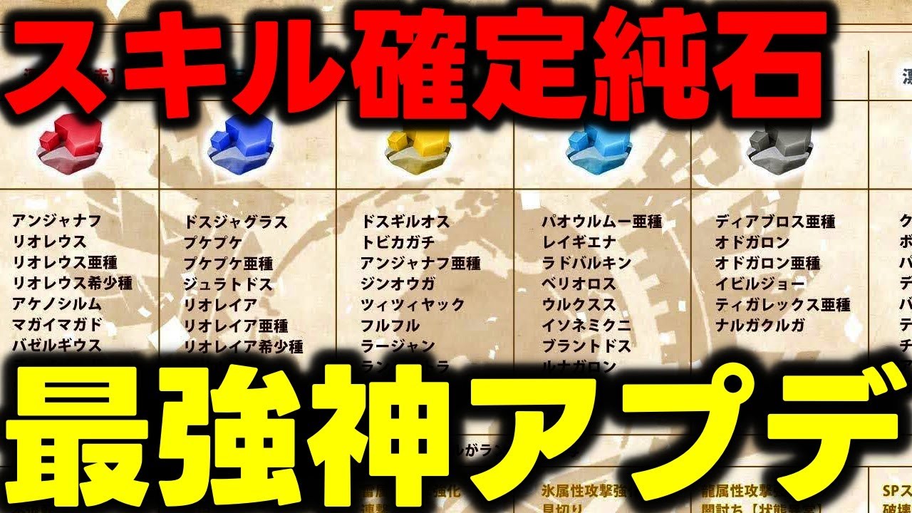 YouTubeで詳細を確認=>【今年一番の神アプデ】錬成5kmから2kmにwww新スキルしれっと爆誕www純石確定ワロタwwwww【モンハンNow】