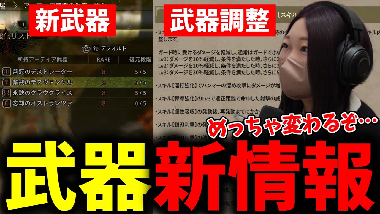 YouTubeで詳細を確認=>アプデ新情報で公開された新武器、武器調整の内容を見るあまみ【モンハンワイルズ】