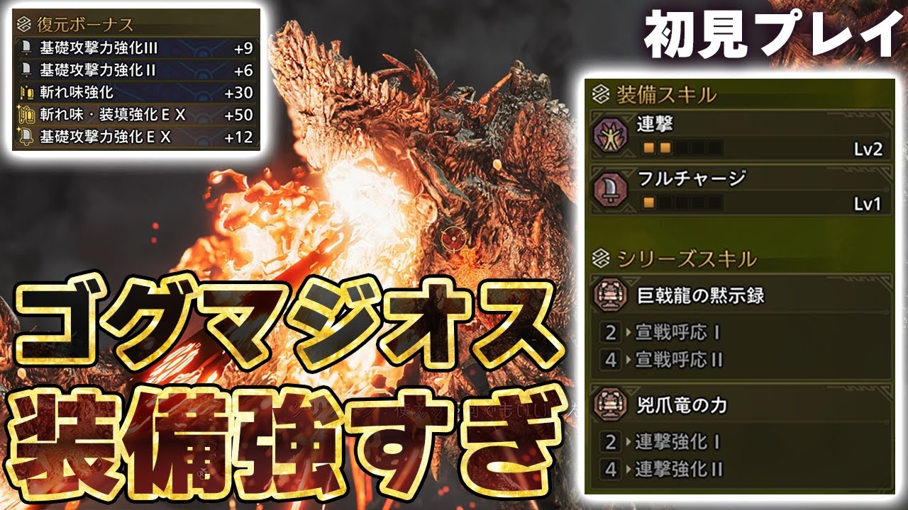 YouTubeで詳細を確認=>ゴグマジオスの新装備『ゴグαβシリーズ』の性能がガチで強い!巨戟アーティアは沼!新防具や護石の強化まとめ!難易度は初見プレイでも簡単!新モンスター初見プレイと新要素まとめ【モンハンワイルズ】