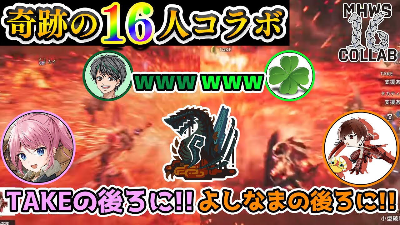 YouTubeで詳細を確認=>『よしなまの後ろに‼️』が聞けてテンションMAXの大剣使いwww 奇跡のモンハン16人コラボ!!🔥【モンハンワイルズ】