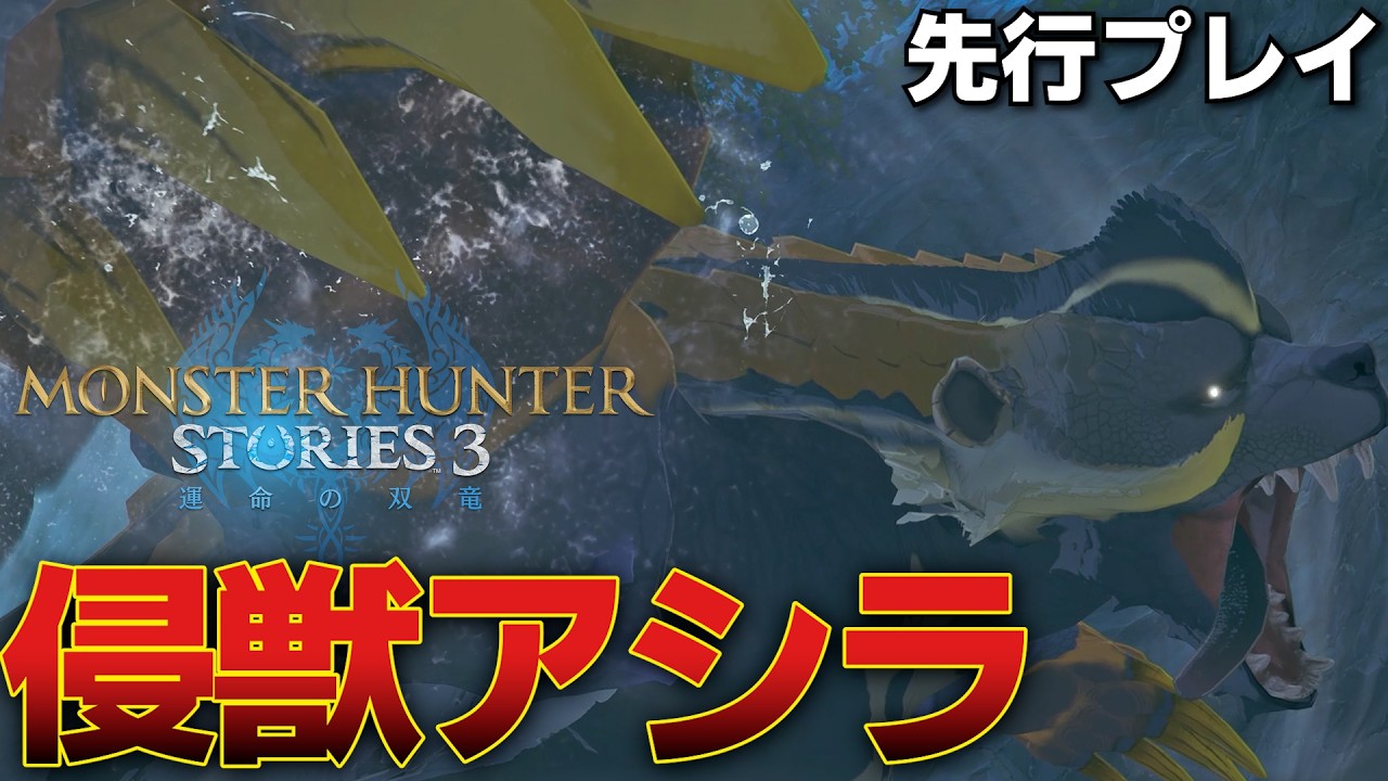 YouTubeで詳細を確認=>【先行プレイ】『侵獣アオアシラ』さん、思わず逃げ出してしまう【モンスターハンターストーリーズ3~運命の双竜~】