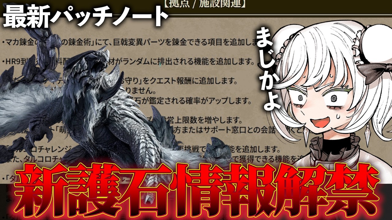 YouTubeで詳細を確認=>『古びた護石』が追加されるけど護石内容に変化はないらしい【最新2/18アプデ情報/MHWilds】