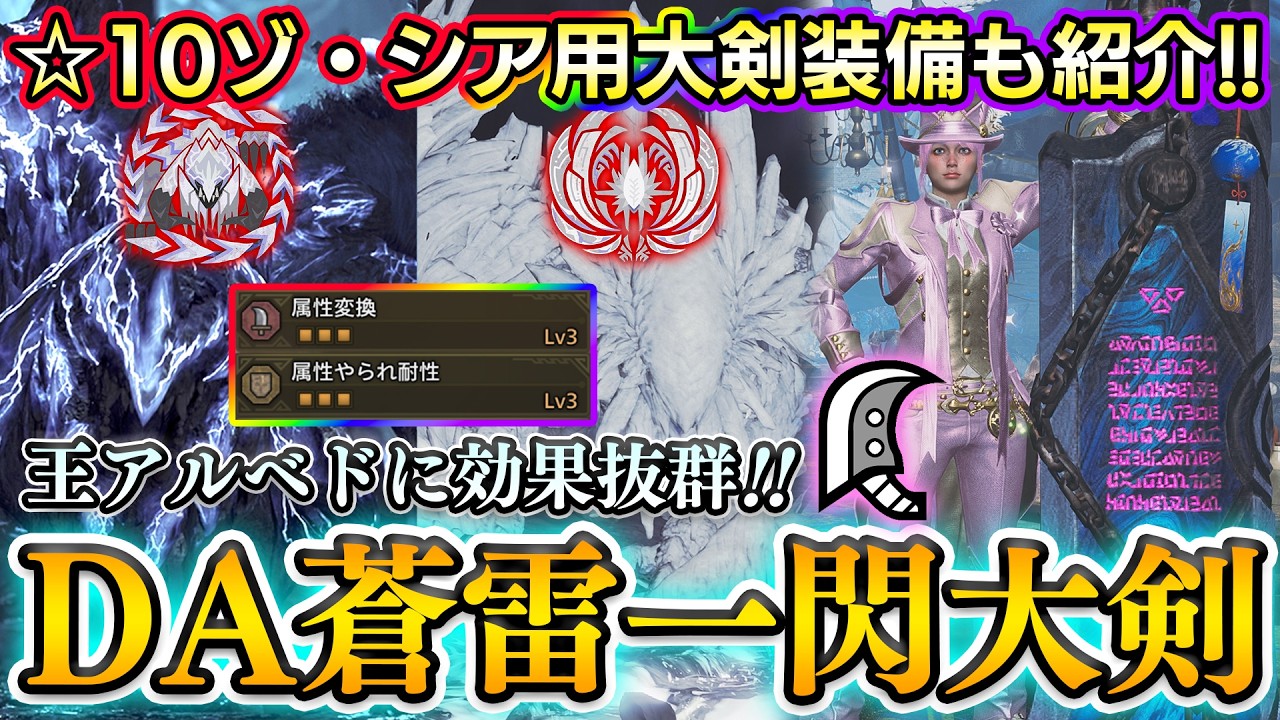 YouTubeで詳細を確認=>【超オススメ‼️】DA蒼雷一閃大剣装備がガチで強すぎる!!☆10ゾ・シア用大剣装備も紹介!王アルベド実戦付き【モンハンワイルズ】