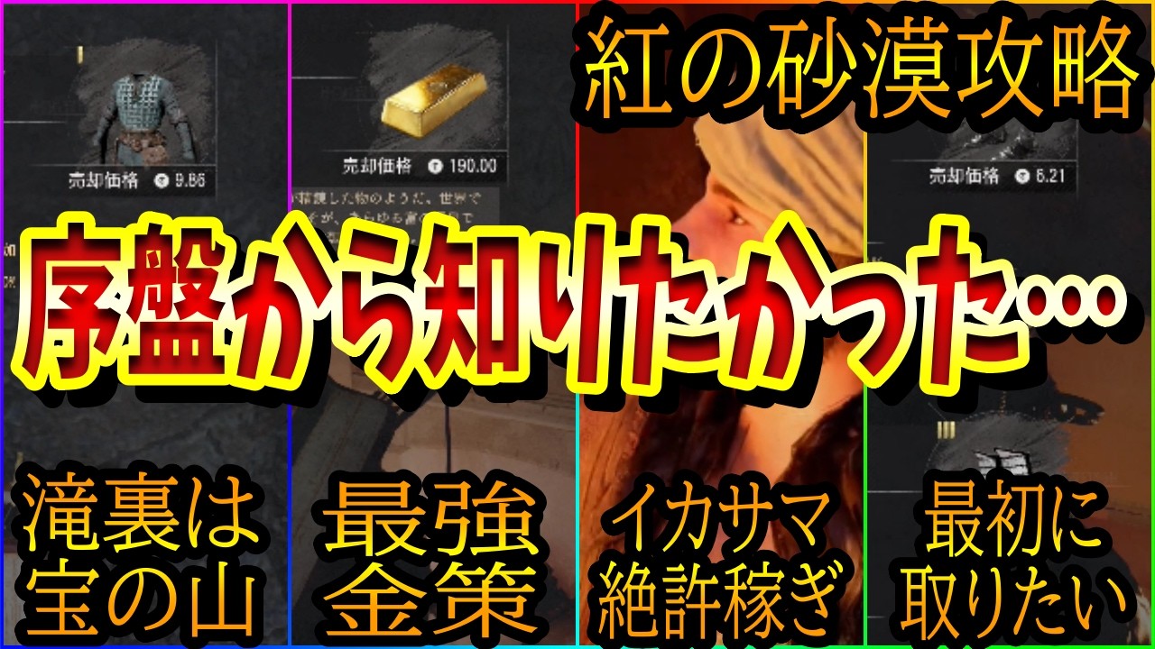 【紅の砂漠】とりあえずコレだけ序盤で入手&覚えておけばOK。序盤最強便利な隠し装備&金策まとめ解説