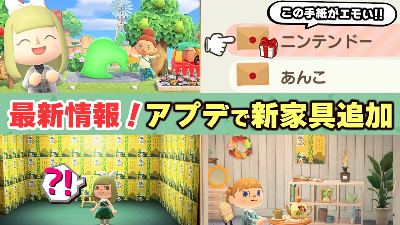 YouTubeで詳細を確認=>【あつ森】最新情報!アプデで新家具が追加!超エモい手紙に感動したよ! 大事な不具合修正についても紹介【あつまれどうぶつの森】